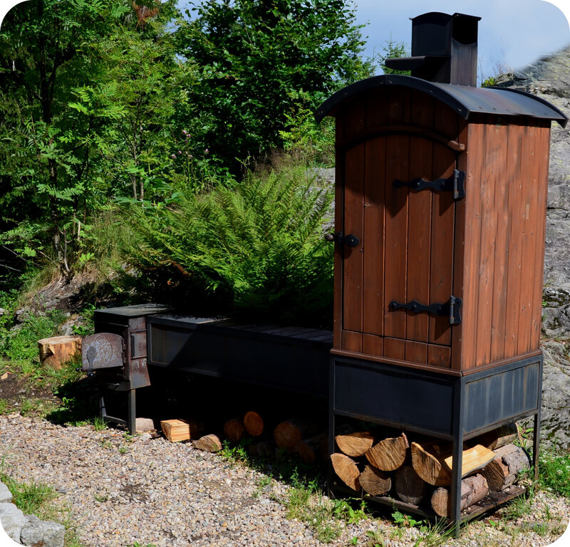 Solidna, często stawiana na lata. Wymaga więcej miejsca, ale pozwala wędzić większe ilości mięsa, ryb czy serów.