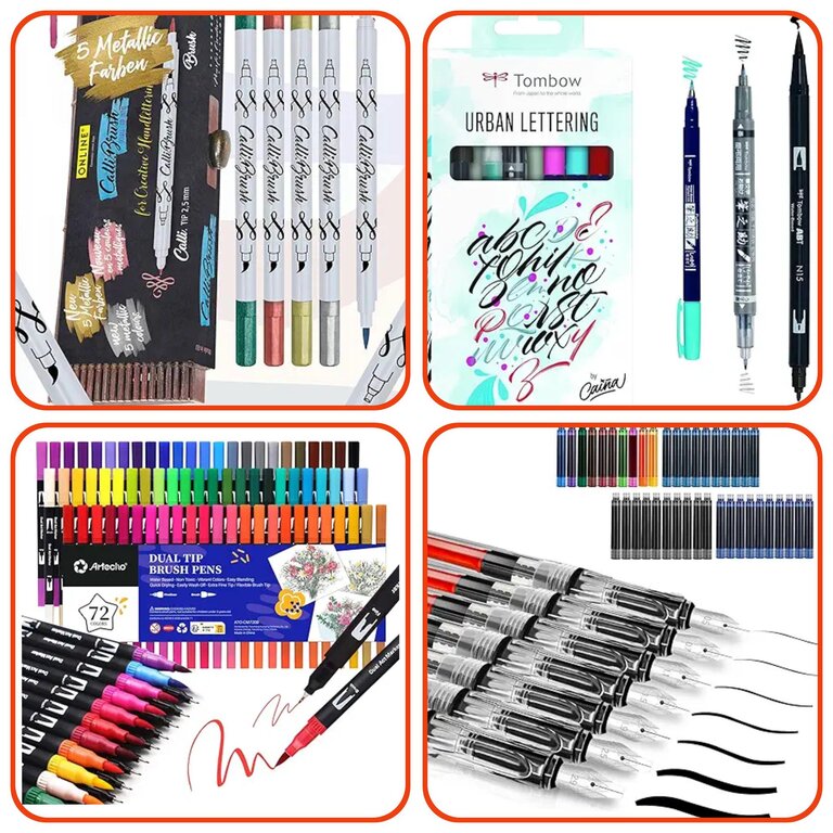 • Pędzle – zarówno ostre, jak i płaskie, mogą być używane do kaligrafii.